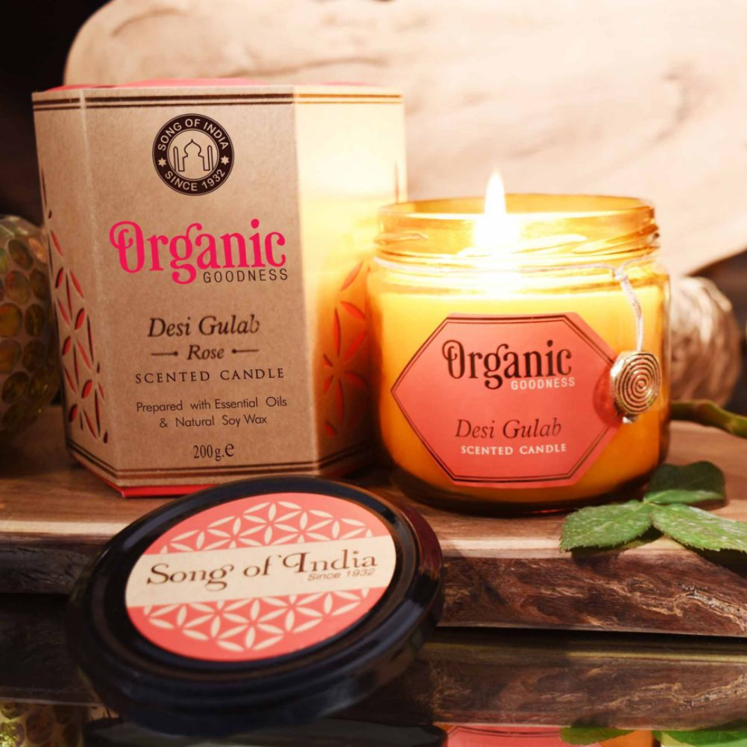 Voelt zacht aan als fluweel en een hemels aroma – de desi gulab, een eeuwige favoriet. De zachte geur van rozen is heerlijk fris. Eén ademtocht van deze romantische bloemenessentie zal u zeker bekoren. Deze geurkaars is gemaakt met essentiële oliën en natuurlijke sojawas en belichaamt de essentie van deze geliefde geur en nodigt je uit om te genieten van de betoverende uitstraling ervan.